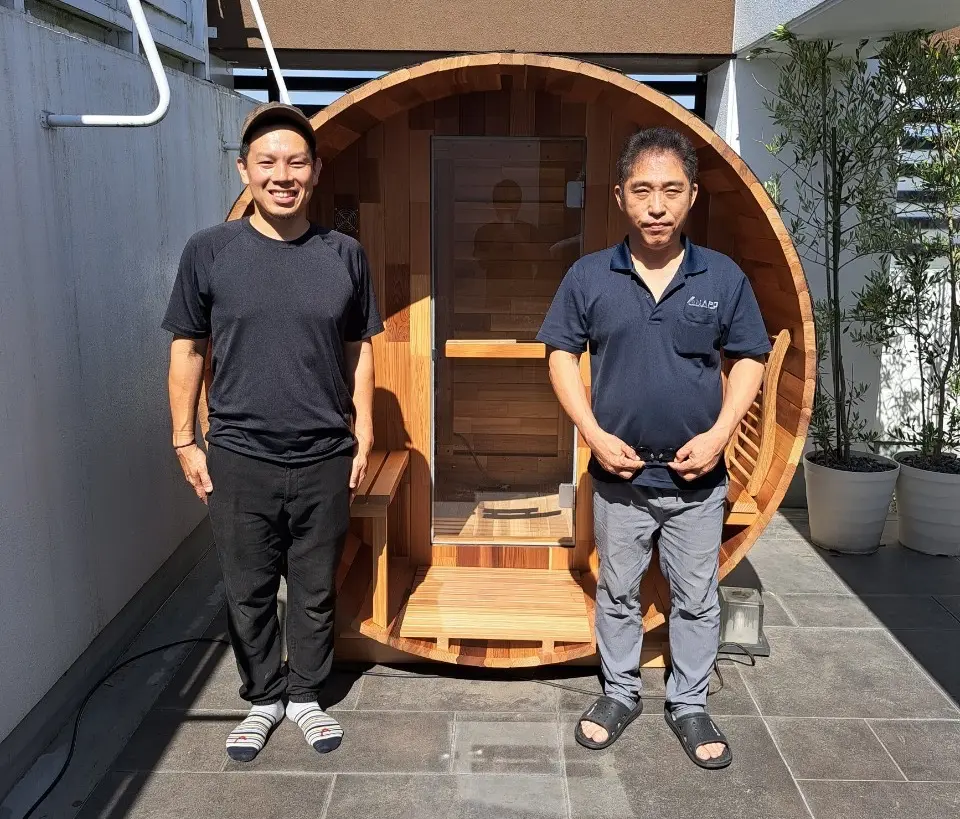 富山県富山市にある ホテル パサディナにて、弊社Greeen Sauna(グリーンサウナ)のバレルサウナをご購入いただきました。(ロウリュ可能な電気ストーブ・木材レッドシダー)