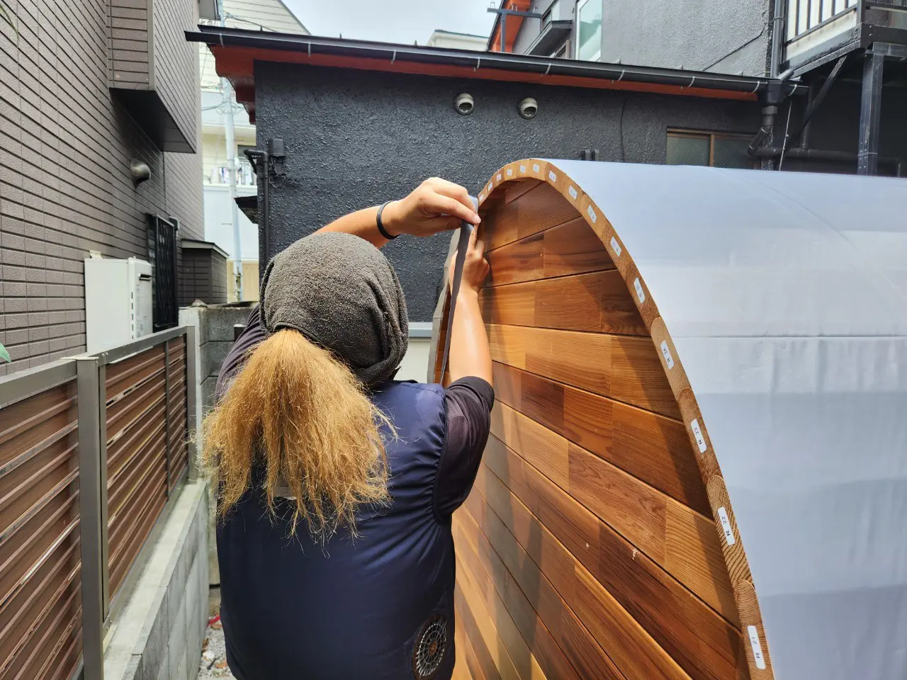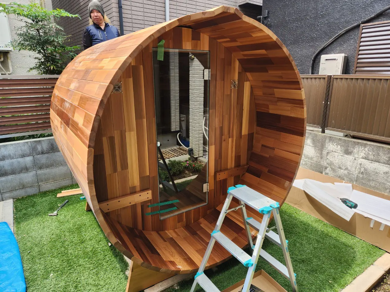 東京都のお客様のご自宅庭にて、弊社Greeen Sauna(グリーンサウナ)のバレルサウナをご購入いただきました。
