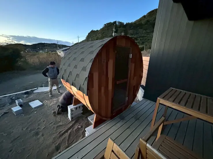 【グランピング】バレルサウナ2台(室内4名用)導入事例<千葉県 グランピング TAVISTAR様>