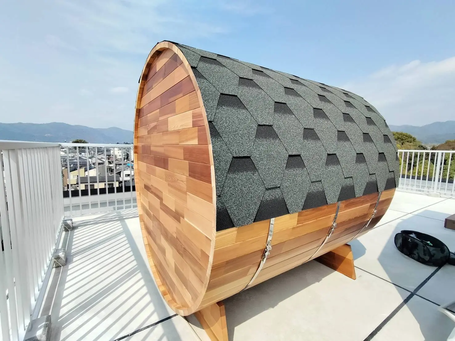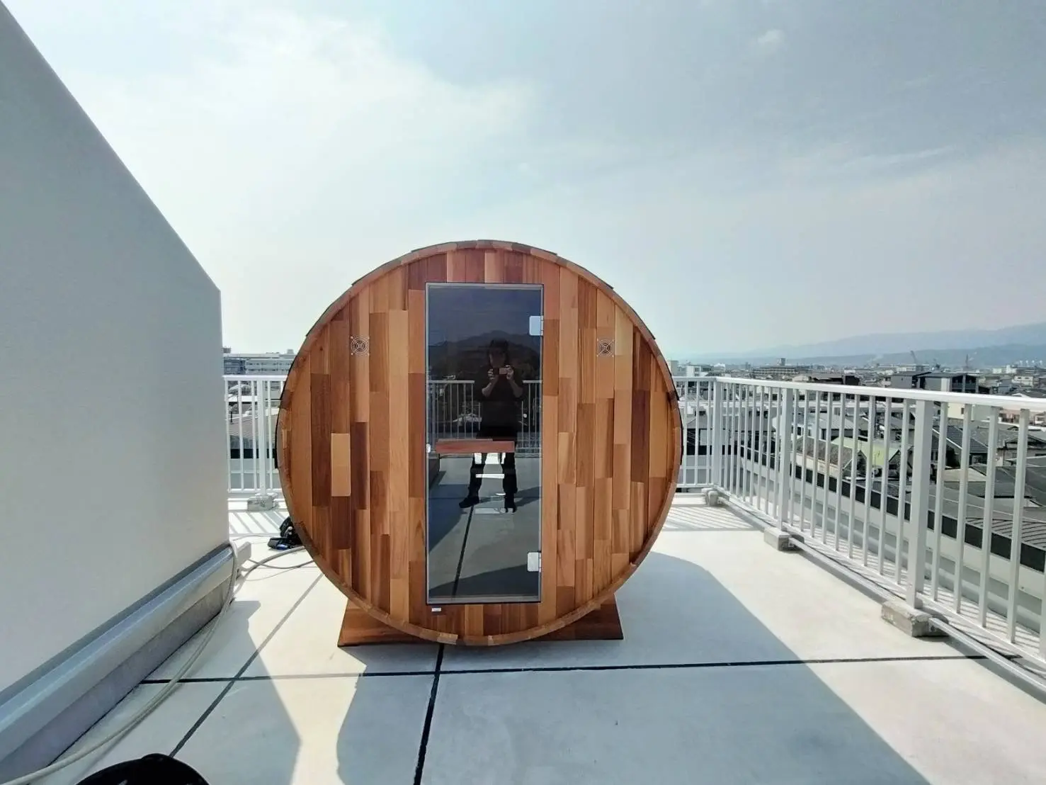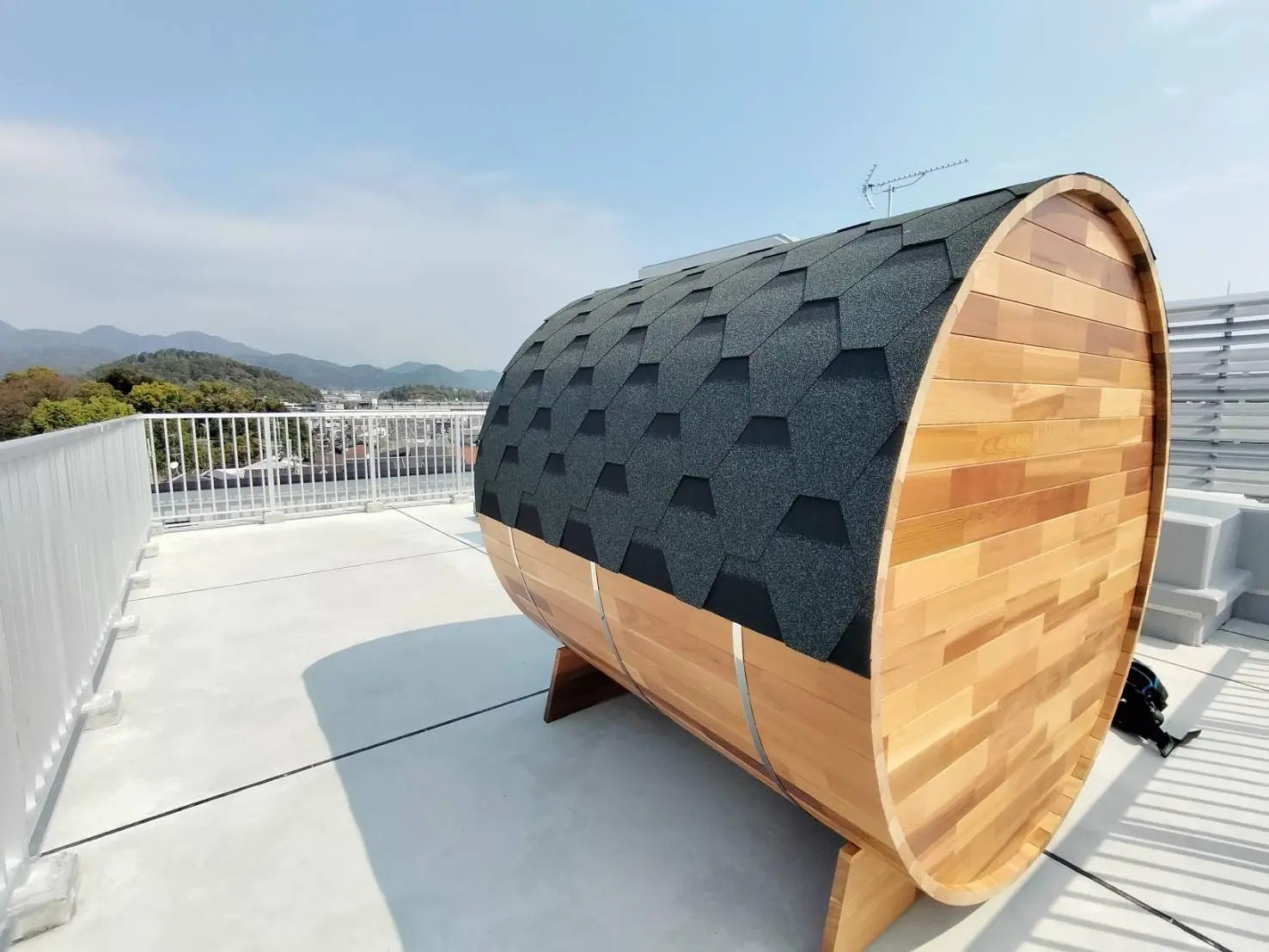 京都府 ビル屋上に、弊社Greeen Sauna(グリーンサウナ)のバレルサウナをご購入いただきました。