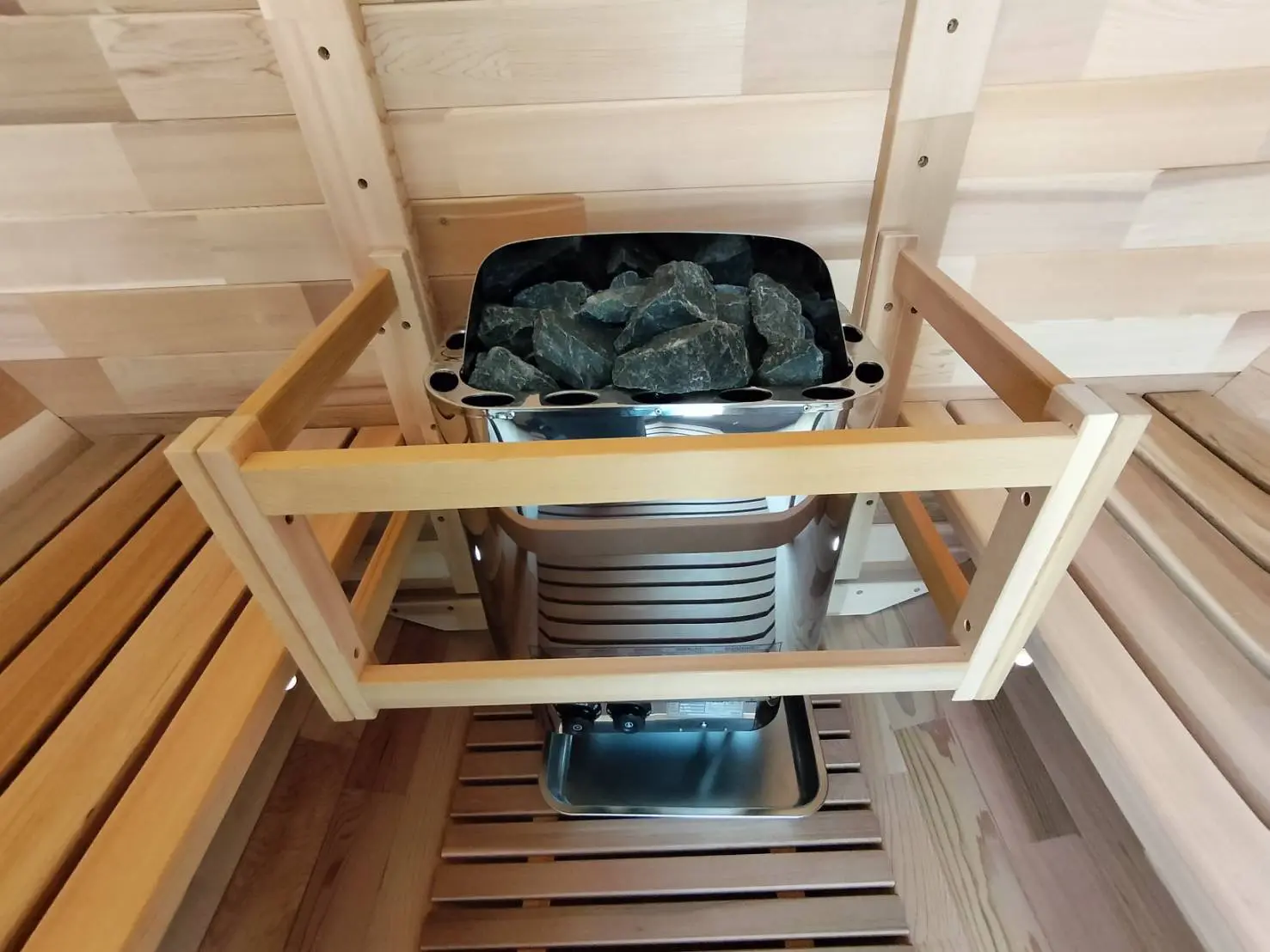 ロウリュが可能な単相4.5KWの電気ストーブで、木材はレッドシダーです。