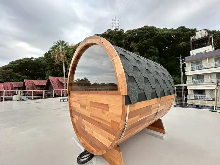 静岡県の宿泊施設にて、弊社Greeen Sauna(グリーンサウナ)のバレルサウナをご購入いただきました。