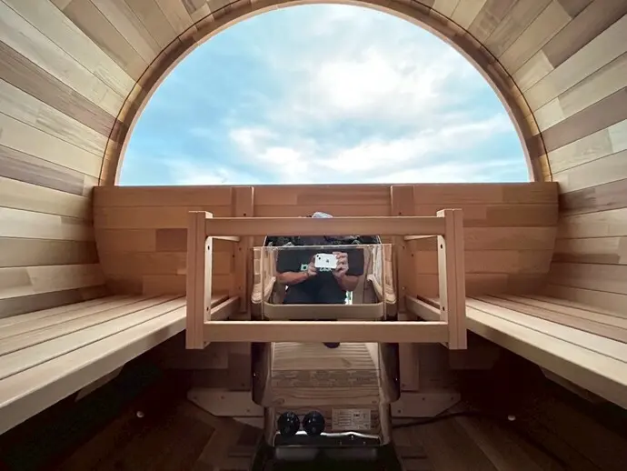 バレルサウナ ハーフ窓 1,800×1,800mm <外椅子なし/室内4名用>