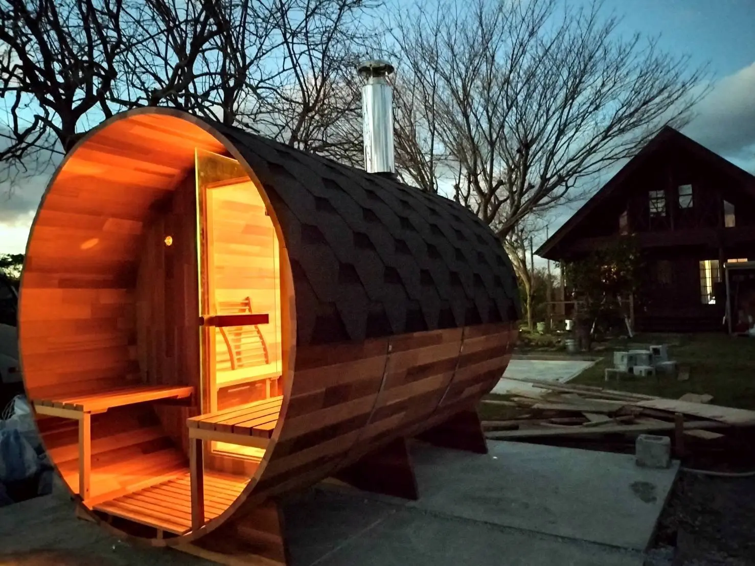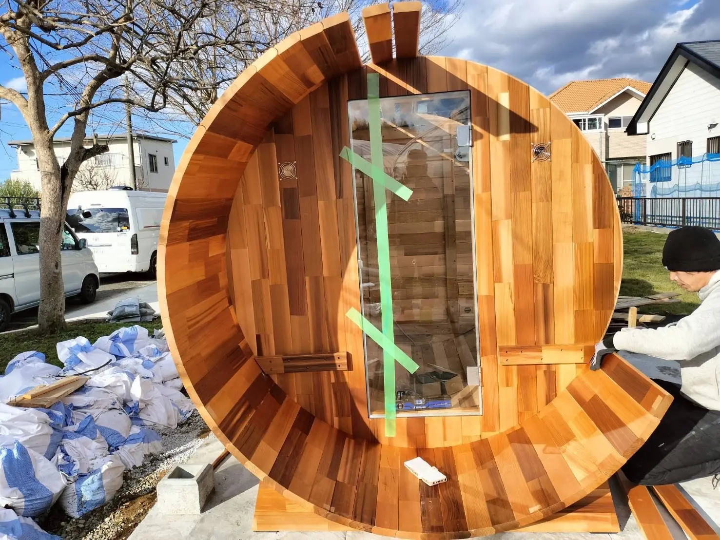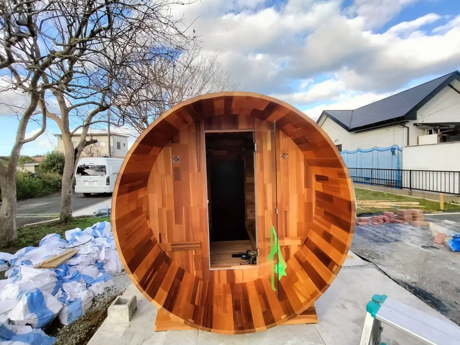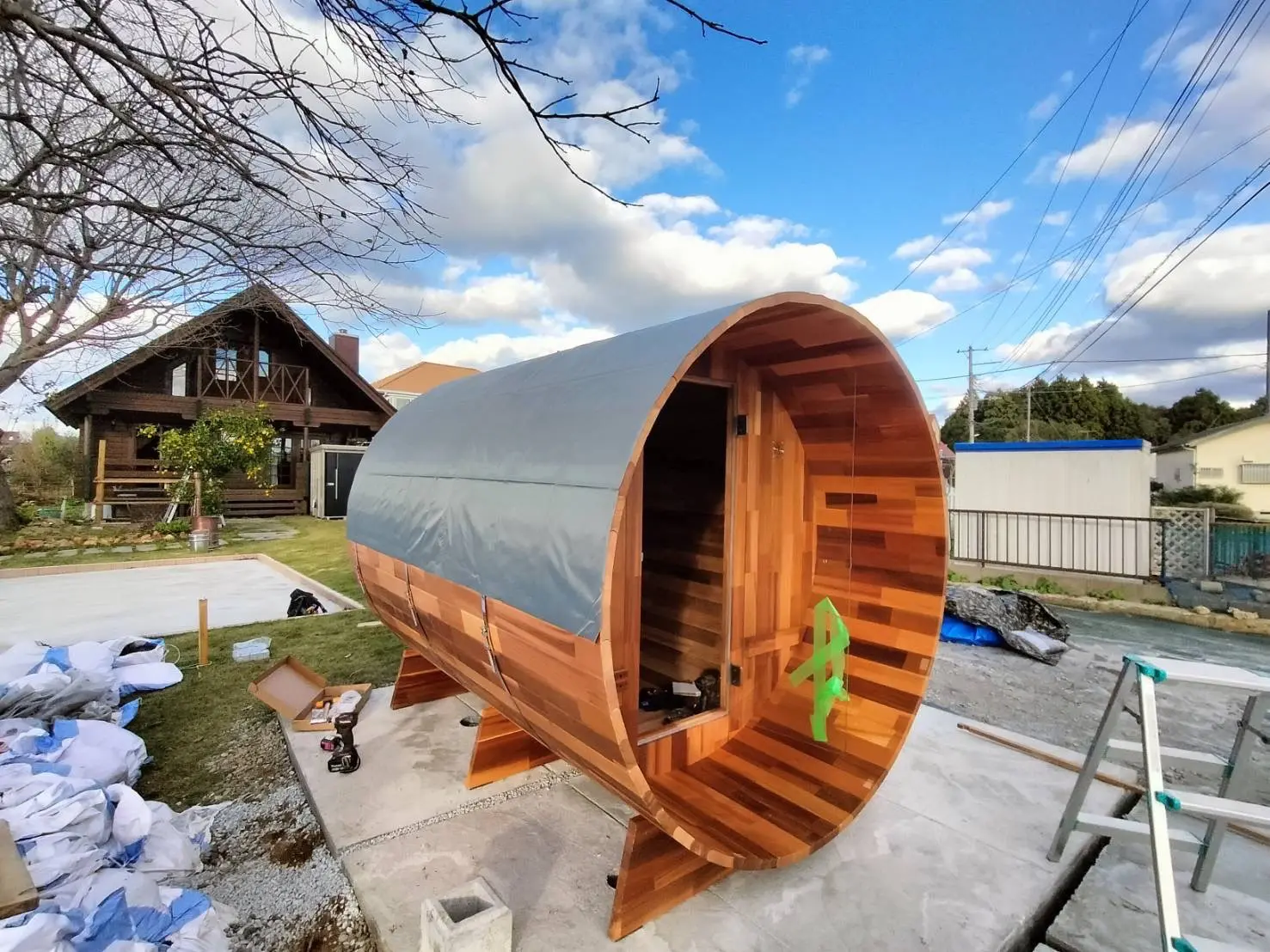 茨城県のお客様のご自宅にて、弊社Greeen Sauna(グリーンサウナ)のバレルサウナをご購入いただきました。