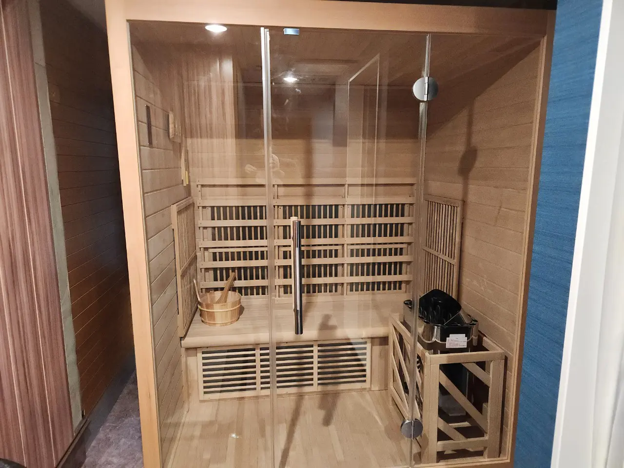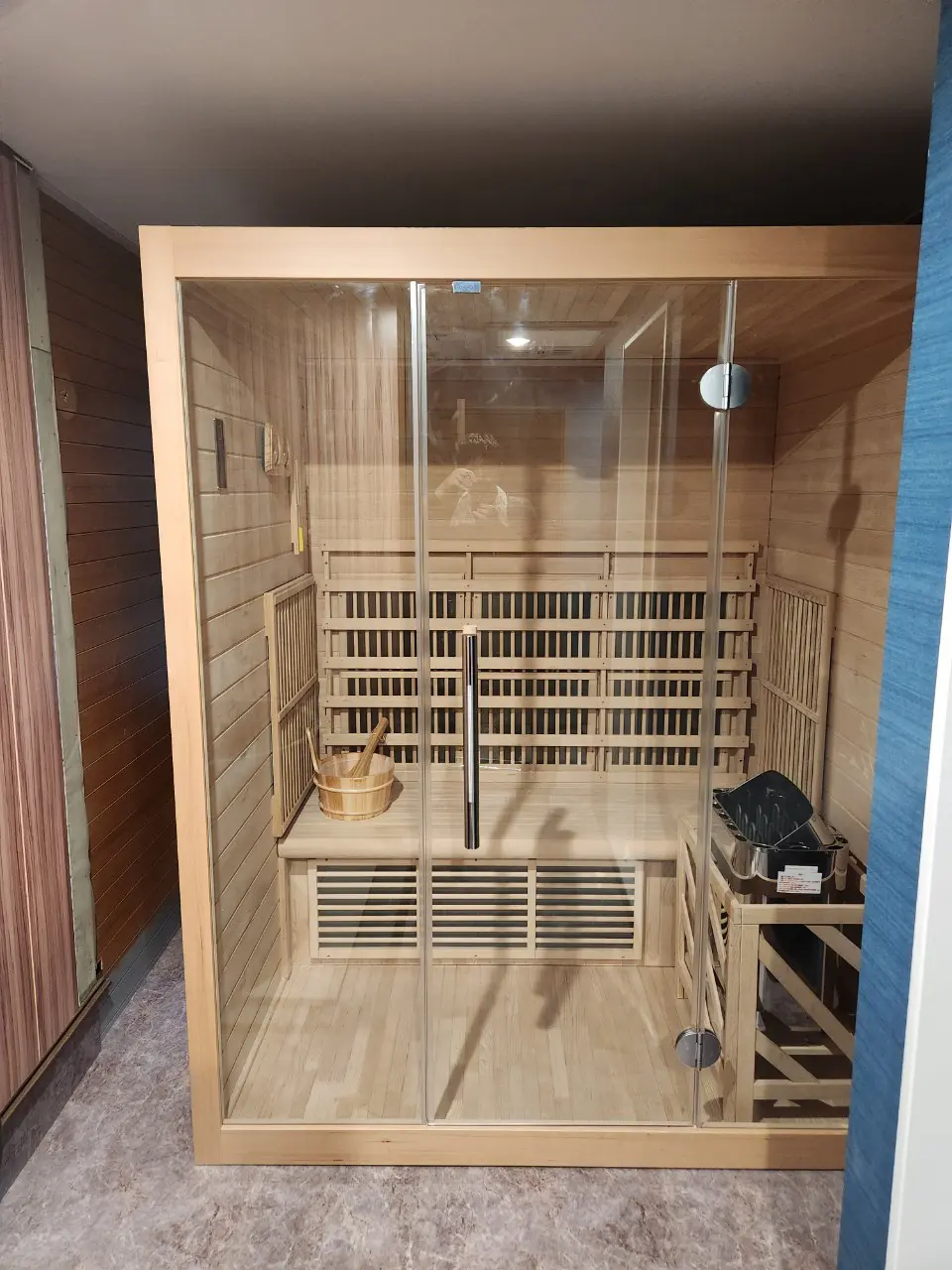 ロウリュ可能な電気ストーブで、木材はヘムロックになります。