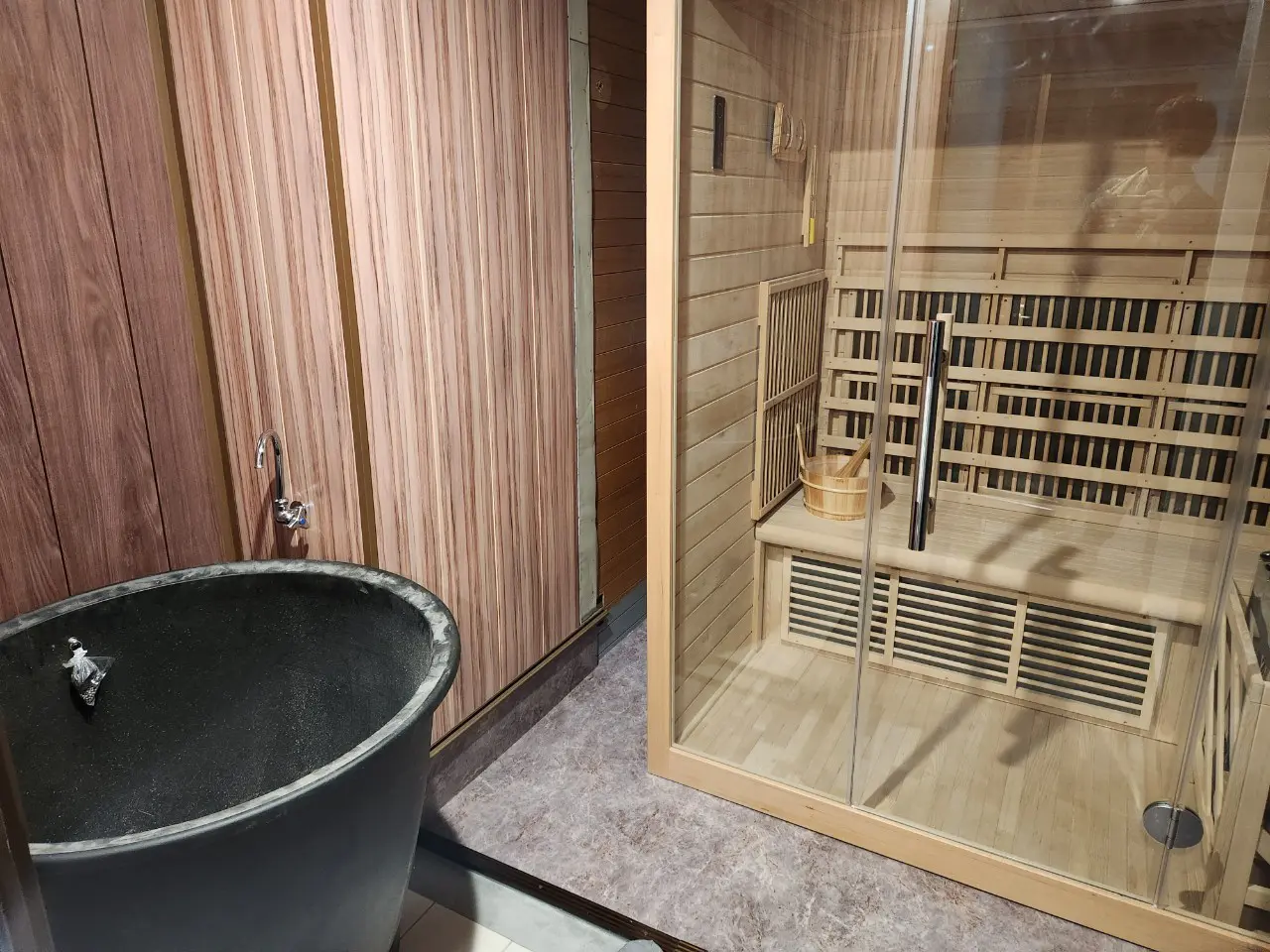 【貸別荘】ガラスデザインサウナ(室内2名用)導入事例<静岡県 貸別荘 ステージヴィラ様>