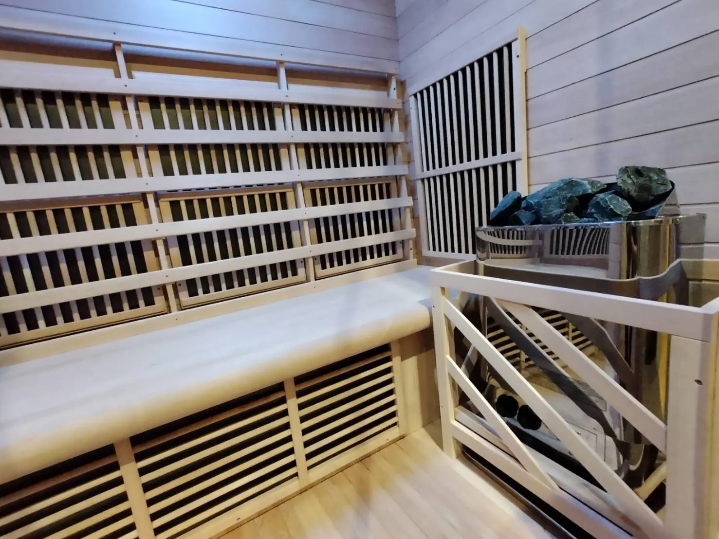 ロウリュ可能な電気ストーブで、木材はヘムロックになります。