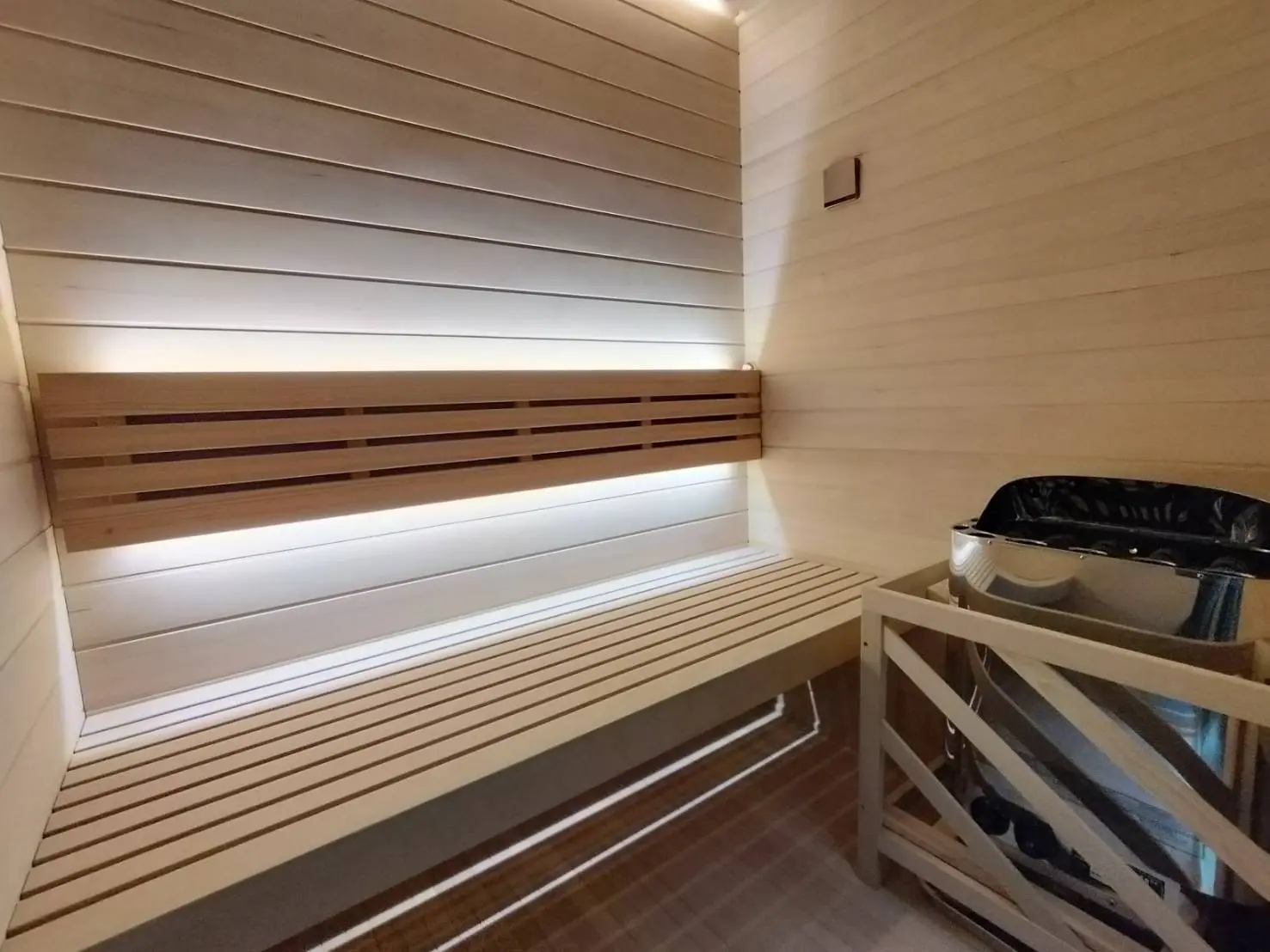 ご自宅でもロウリュが可能な単相4.5KWの電気ストーブで、木材はヘムロックです。